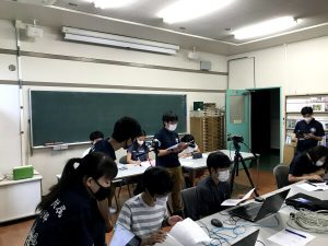 そして、新型コロナウイルス感染拡大が収まらず、本校が夏休み前までの分散登校を決定したことを受け、このままでは予算案未承認による執行の遅れにより生徒会活動全体に多大なる影響が出ることから執行部にて生徒総会のオンライン開会を決定いたしました。議長団・執行部・委員長が登校し学校からZoomでの同時双方向配信を行い、一般生徒が自宅から参加する形態での実施です。